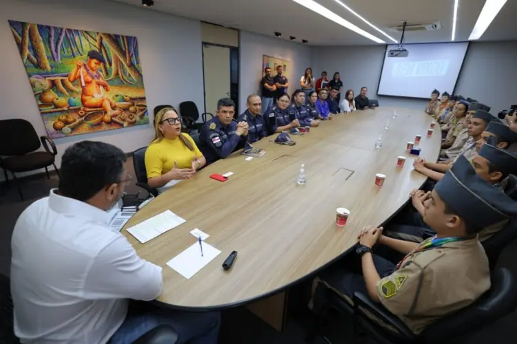 O governador Wilson Lima recebeu, nesta terça-feira (18/02), estudantes e professores que vão compor a delegação brasileira rumo à Olimpíada Internacional de Matemática, que acontecerá dos dias 22 a 26 de fevereiro em Bangkok, na Tailândia. Com o apoio do Governo do Amazonas, 11 alunos da rede pública e quatro professores participarão da competição no país asiático.